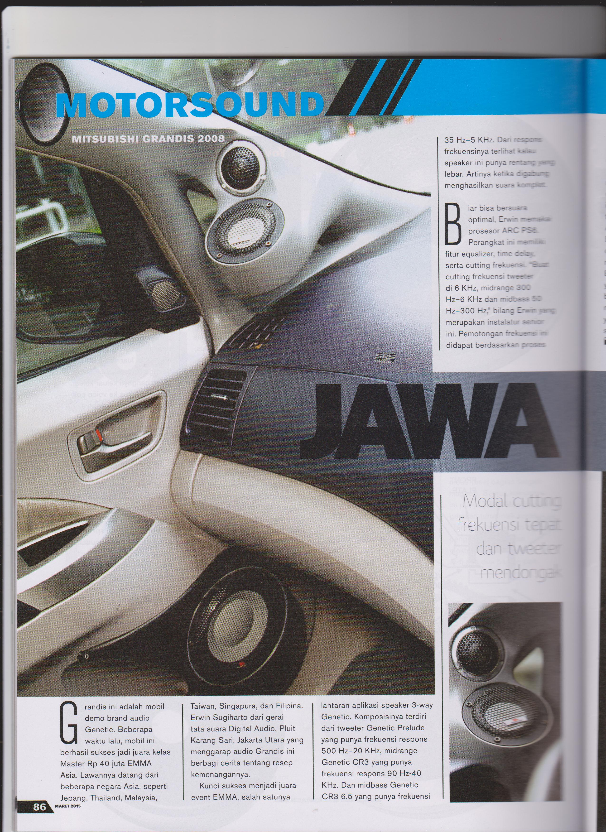 Genetic Car Coverage titled "Asian Champions" in the magazine Slot Cars, Slot Cars 2015 March issue of giving special attention, as shown by the 2 pages created just for show cars spread frontal side and the title of champion ASIA. Reviews on the next two pages. For about the Mitsubishi Grandis car audio is indeed worthy of media coverage. What article? Because Genetic have to deal with products from many of their advanced products that will be the one in the car audio system. If that brings together the advantages of car audio products is a Master Installer Asian world, what the world says. Terrible! But in the Mitsubishi Grandis products are not a hodgepodge of various brands, just rely on one brand Genetic which dominates a full system. As a result, the car's full Genetic included in top 5 Asian champions. Keep in mind, of which 5 great champion who was just there Genetic full system became the champion of Asia, via the Final EMMA Asia, in Thailand, in 2014 ago.